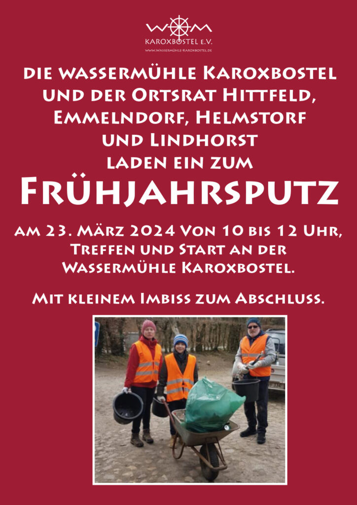 Der Ortsrat Hittfeld und die Wassermühle Karoxbostel laden am 23. März 2024ein zum Frühjahrsputz.