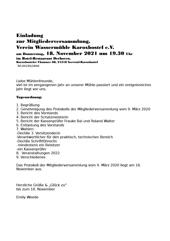 um 19.30 Uhr im Hotel-Restaurant Derboven, Karoxbosteler Chaussee 68, 21218 Seevetal-Karoxbostel