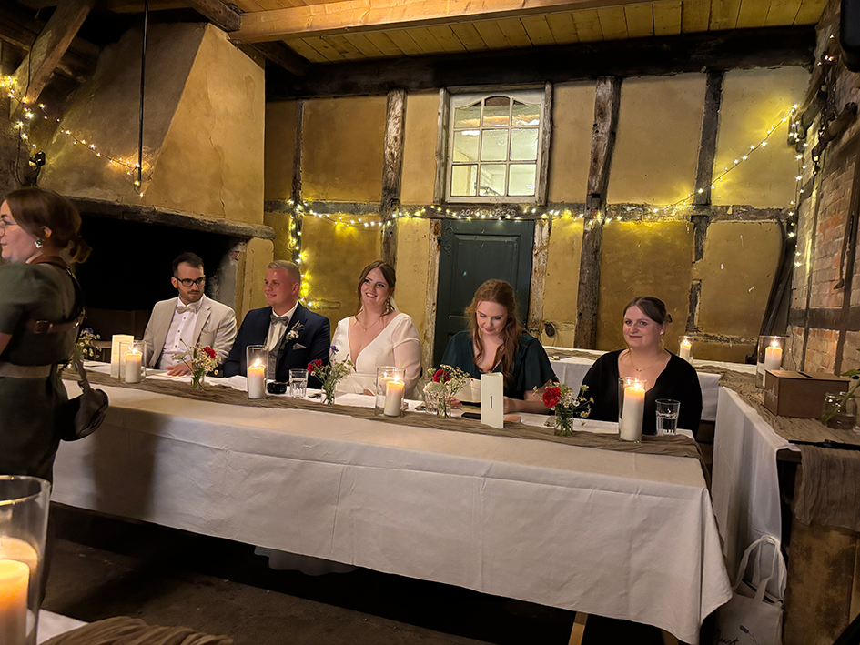 Kleinere Hochzeitsgesellschaften finden in der guten Stube den idealen Ort zum Heiraten. Die Stube bezaubert den Besucher durch ihre seit rund hundert Jahren unverändert gebliebene Ausstattung – liebevoll wurde sie erhalten und restauriert. Für den Sektempfang und einen kleinen Imbiss im Anschluss an die Trauung können die Frischvermählten und ihre Gäste die original wieder hergerichtete Mühlenstube sowie die Terrasse direkt am rauschenden Mühlenbach nutzen. Dieses einmalige Ensemble ist einfach ein idealer Ort, um in das gemeinsame Leben zu starten.