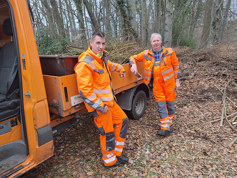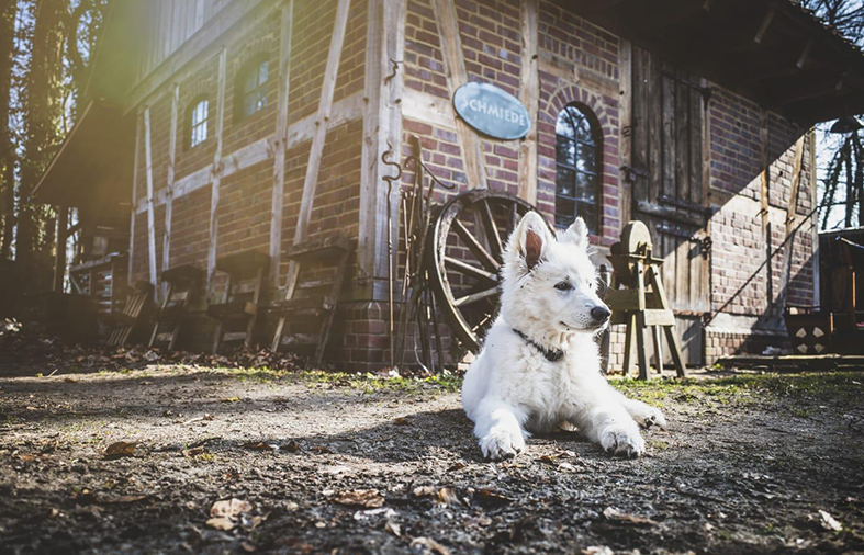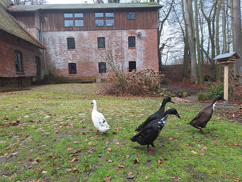 Peter war derweil im Mühlenwäldchen im Einsatz, um dort Pfade für die neue Saison vorzubereiten. Seine Tochter Janina hat sich gerade einen jungen Hund zugelegt: „Filou“ ist ein weißer Hütehund und eine echte Schönheit. Sein Frauchen hat einen befreundeten Fotografen zur Mühle mitgebracht, der „Filou“ in dieser besonderen Umgebung abgelichtet hat. Die Laufenten, deren Stall auch gerade ausgemistet wurde, hat der Hundebesuch nicht irritiert. Michael W. hat am Dienstag Holz an die Mühle gebracht, das Claus für eine Tischplatte zugesägen will. Mühlenfreunde helfen sich eben gegenseitig! Ursula hat wieder fleißig in Doras Garten gearbeitet. Reinhard und Margit haben sich um die Huckis gekümmert. Magnus war in seiner Dienstpause kurz an der Mühle. Er hat die großen Eichen ausgemessen, die Michael W. unserem Mühlenverein gespendet hat. Zur Wertermittlung hat Magnus die genaue Festmeterzahl berechnet und die Stämme entsprechend mit Sprühfarbe ausgezeichnet. Am Donnerstag fahren Magnus und Carsten zur Antragsteller-Konferenz der Bingo-Umweltstiftung in Hannover. Emily, die dazu als Bürgermeisterin und als Vereinsvorsitzende eingeladen wurde, kann diesmal aus Termingründen leider nicht dabei sein.