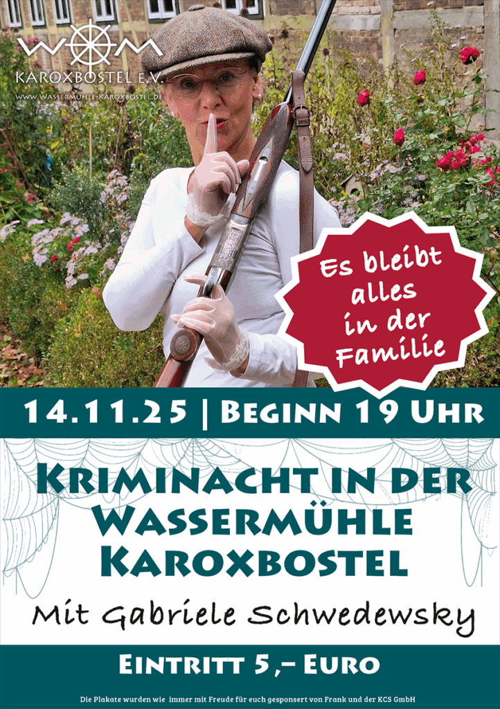 Krimi-Fans dürfen sich wieder auf knisternde Spannung und schwarzen Humor freuen: Unter dem Motto: „Es bleibt alles in der Familie“ entführt Gabriele Schwedewsky ihre Zuhörer bei der 9. Karoxbosteler […]